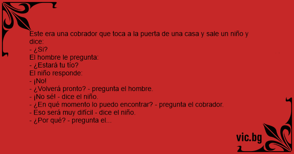 Este era una cobrador que toca a la puerta de una casa y sale un niño y dice: