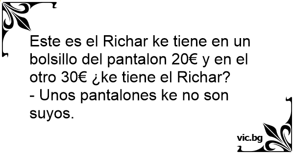 Este es el Richar ke tiene en un bolsillo del pantalon 20€ y en el otro 30€ ¿ke tiene el Richar?