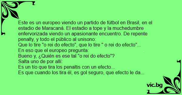Este es un europeo viendo un partido de fútbol en Brasil, en el estadio de Maracaná. El estadio a tope y la muchedumbre enfervorizada viendo un apasionante encuentro. De repente penalty, y todo el público al unisono: