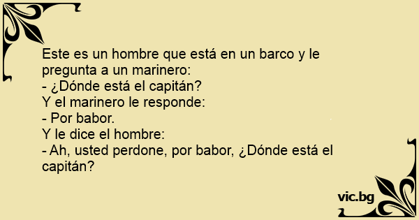 - Ah, usted perdone, por babor, ¿Dónde está el capitán?