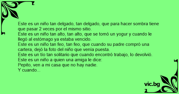 Este es un niño tan delgado, tan delgado, que para hacer sombra tiene que pasar 2 veces por el mismo sitio.