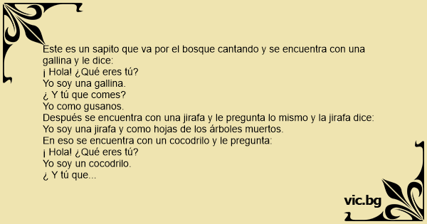 Este es un sapito que va por el bosque cantando y se encuentra соn una gallina y le dice: