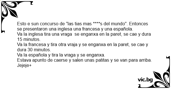 Esto e sun concurso de "las tias mas ****s del mundo". Entonces se presentaron una inglesa una francesa y una española.