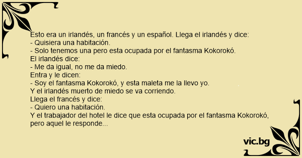 Esto era un irlandés, un francés y un español. Llega el irlandés y dice: