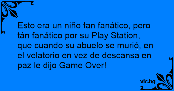 Esto era un niño tan fanático, pero tán fanático por su Play Station, que cuando su abuelo se murió, en el velatorio en vez de descansa en paz le dijo Game Over!