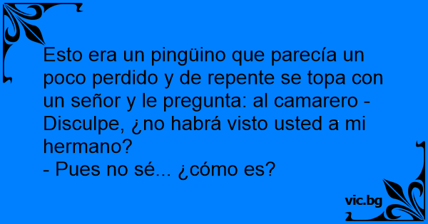 Esto era un pingüino que parecía un poco perdido y de repente se тора соn un señor y le pregunta: al camarero -Disculpe, ¿no habrá visto usted a mi hermano?