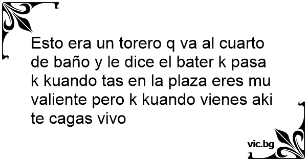 Esto era un torero q va al cuarto de baño y le dice el bater k pasa k kuando tas en la plaza eres mu valiente pero k kuando vienes aki te cagas vivo