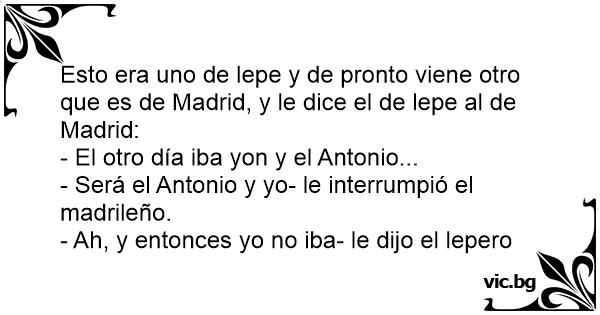 Esto era uno de lepe y de pronto viene otro que es de Madrid, y le dice el de lepe al de Madrid: