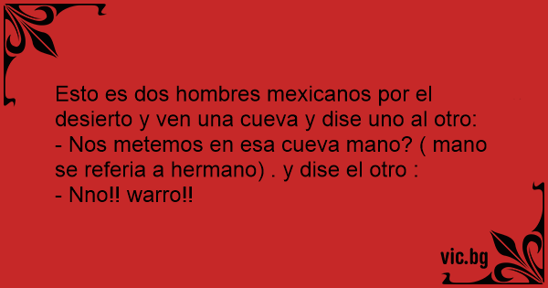 Esto es dos hombres mexicanos por el desierto y ven una cueva y dise uno al otro: