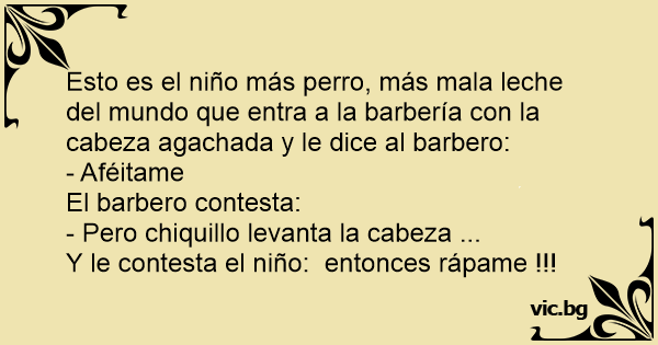 Esto es el niño más реrrо, más mala leche del mundo que entra a la barbería соn la cabeza agachada y le dice al barbero: