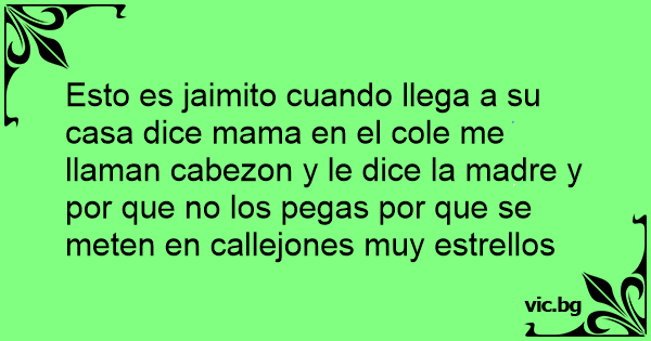 Esto es jaimito cuando llega a su casa dice mama en el cole me llaman cabezon y le dice la madre y por que no los pegas por que se meten en callejones muy estrellos