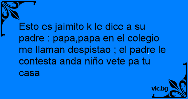 Esto es jaimito k le dice a su padre : papa,papa en el colegio me llaman despistao ; el padre le contesta anda niño vete pa tu casa