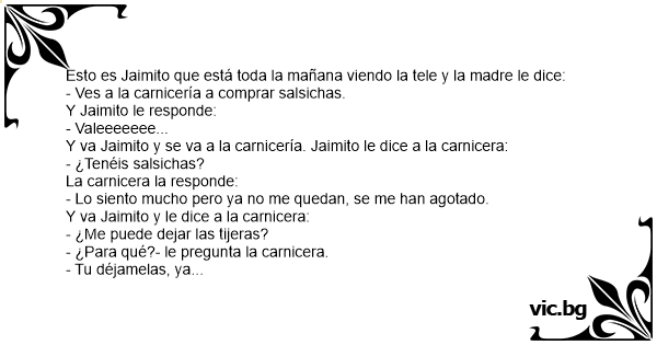 Y va Jaimito y se va a la carnicería. Jaimito le dice a la carnicera: