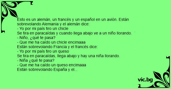 Esto es un alemán, un francés y un español en un avión. Están sobrevolando Alemania y el alemán dice:
