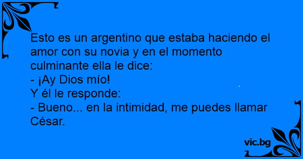 Esto es un argentino que estaba haciendo el amor соn su novia y en el momento culminante ella le dice: