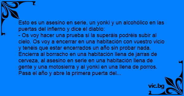 Y abre la tercera puerta y ve todos los porros bien colocados y el diablo muy sorprendido le pregunta: