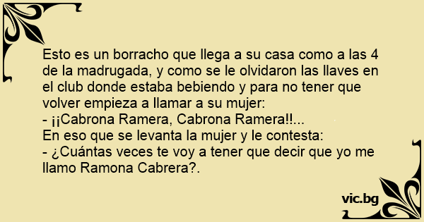 Esto es un borracho que llega a su casa como a las 4 de la madrugada, y como se le olvidaron las llaves en el club donde estaba bebiendo y para no tener que volver empieza a llamar a su mujer: