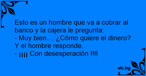 Esto es un hombre que va a cobrar al banco y la cajera le pregunta:
