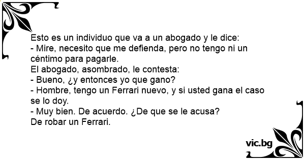 - Hombre, tengo un Ferrari nuevo, y si usted gana el caso se lo doy.