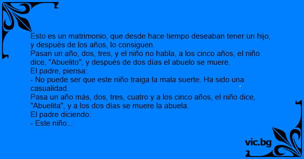 Pasan un año, dos, tres, y el niño no habla, a los cinco años, el niño dice, "Abuelito", y después de dos días el abuelo se muere.