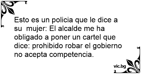 Esto es un policia que le dice a su mujer: El alcalde me ha obligado a poner un cartel que dice: prohibido robar el gobierno no acepta competencia.