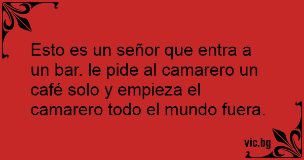Esto es un señor que entra a un bar. le pide al camarero un café solo y empieza el camarero todo el mundo fuera.