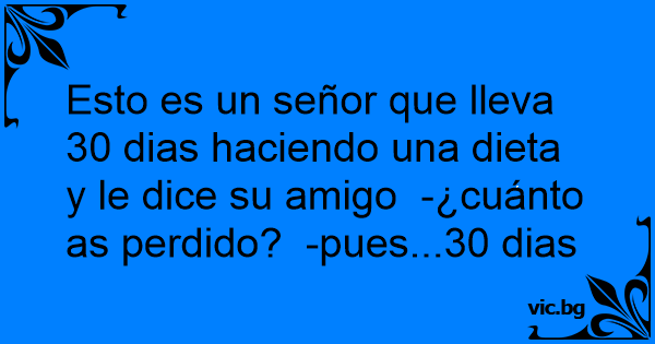 Esto es un señor que lleva 30 dias haciendo una dieta y le dice su amigo -¿cuánto as perdido? -pues...30 dias