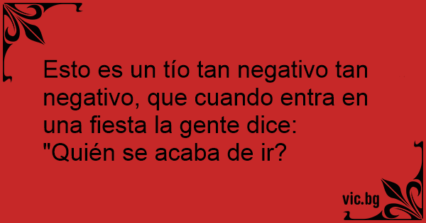 Esto es un tío tan negativo tan negativo, que cuando entra en una fiesta la gente dice: