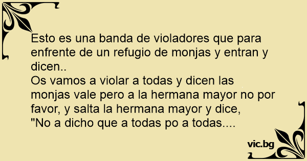Os vamos a violar a todas y dicen las monjas vale pero a la hermana mayor no por favor, y salta la hermana mayor y dice,