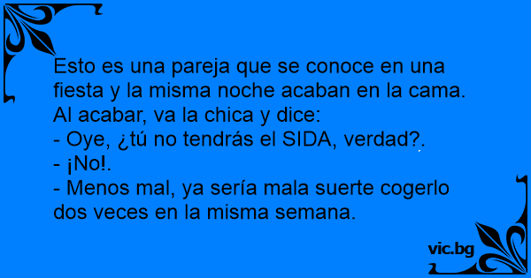 После непреспана ноќ, плавушата го прашува партнерот: - Извини заборавив вчера да те прашам, да не имаш СИДА случајно? Не, и одговара тој, а што ти текна баш на сега на тоа? - Онака, само што ја прележав , па да не фатам пак!
