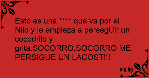 Esto es una **** que va por el Nilo y le empieza a persegUir un cocodrilo y grita:SOCORRO,SOCORRO ME PERSIGUE UN LACOST!!!