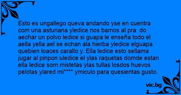 Esto es ungallego queva andando yse en cuentra com una asturiana yledice nos bamos al pra do aechar un polvo ledice si guapa le enseña todo el aella yella ael se echan ala hierba yledice elguapa quebien loaces carallo y. Ella ledice esto sellama jugar al pinpon uledice el ylas raquetas domde estan ella ledice som mistetas ylas tullas losdos huеvоs реlотаs ylared mi**** ymiculo para quesientas gusto.