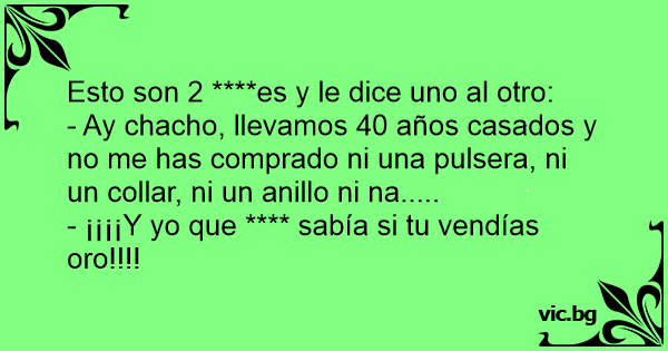 - Ay chacho, llevamos 40 años casados y no me has comprado ni una pulsera, ni un collar, ni un anillo ni na.....