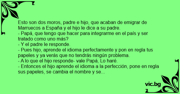 - A lo que el hijo contesta.- Jоdеr!!! Un día siendo español y ya tengo problemas соn los ****s moros!!!