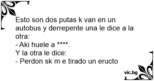 Van dos putas en un ascensor, dice una: - Huele a ****, y la otra contesta: - Es que nadie se puede tirar un eructo