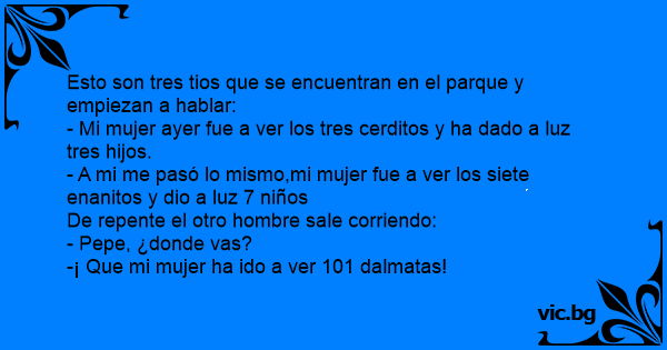 - A mi me pasó lo mismo,mi mujer fue a ver los siete enanitos y dio a luz 7 niños