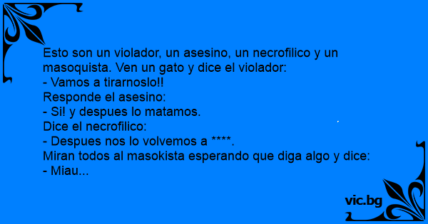 Esto son un violador, un asesino, un necrofilico y un masoquista. Ven un gato y dice el violador:
