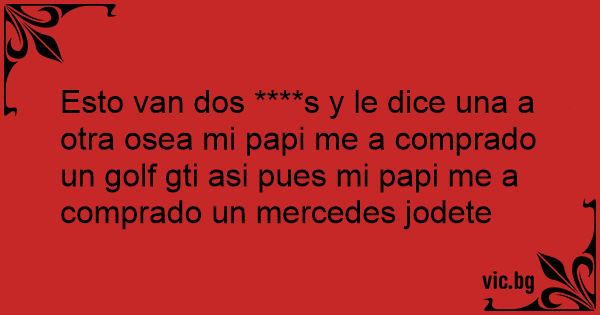 Esto van dos ****s y le dice una a otra osea mi papi me a comprado un golf gti asi pues mi papi me a comprado un mercedes jodete