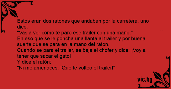 Estos eran dos ratones que andaban por la carretera, uno dice: