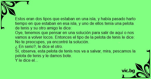 Estos eran dos tipos que estaban en una isla, y había pasado harto tiempo en que estaban en esa isla, y uno de ellos tenía una pelota de tenis y su otro amigo le dice: