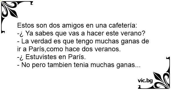 - La verdad es que tengo muchas ganas de ir a París,como hace dos veranos.