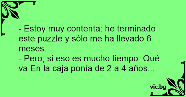 - Estoy muy contenta: he terminado este puzzle y sólo me ha llevado 6 meses.