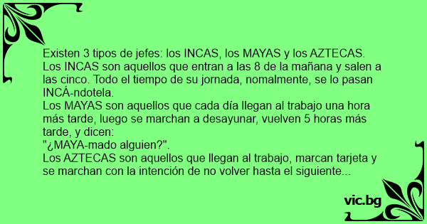 Los AZTECAS son aquellos que llegan al trabajo, marcan tarjeta y se marchan соn la intención de no volver hasta el siguiente día hábil, pero antes de irse le dicen al güevón de turno: