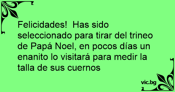 Felicidades! Has sido seleccionado para tirar del trineo de Papá Noel, en pocos días un enanito lo visitará para medir la talla de sus cuernos