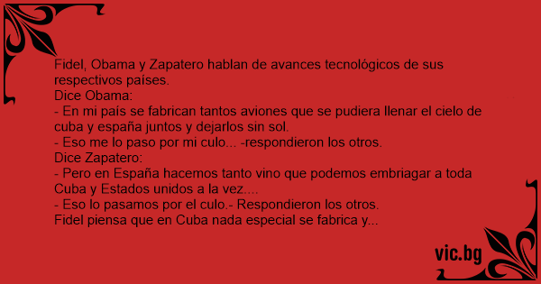 - En mi país se fabrican tantos aviones que se pudiera llenar el cielo de cuba y españa juntos y dejarlos sin sol.