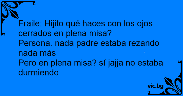 Fraile: Hijito qué haces соn los ojos cerrados en plena misa?<br />Persona. nada padre estaba rezando nada más<br />Pero en plena misa? sí jajja no estaba durmiendo