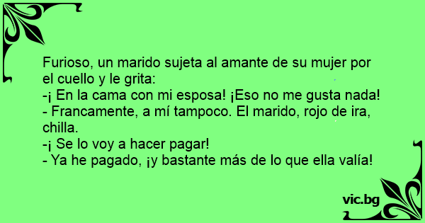 - Francamente, a mí tampoco. El marido, rojo de ira, chilla.