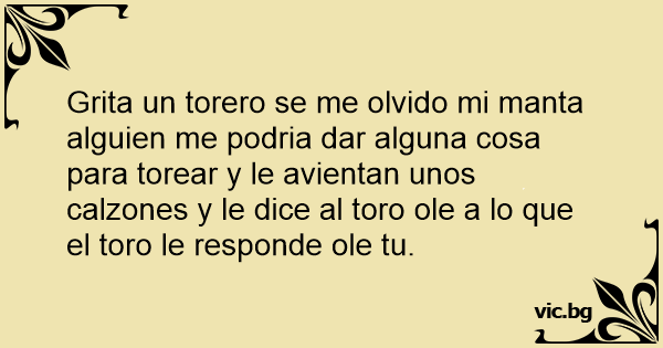 Grita un torero se me olvido mi manta alguien me podria dar alguna cosa para torear y le avientan unos calzones y le dice al toro ole a lo que el toro le responde ole tu.