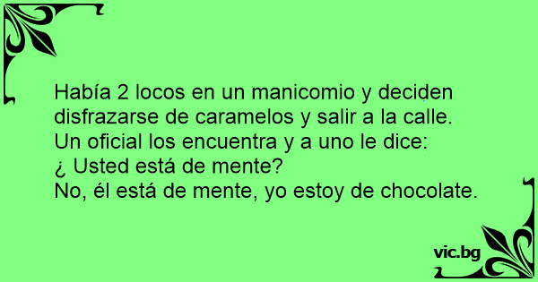 Había 2 locos en un manicomio y deciden disfrazarse de caramelos y salir a la calle. Un oficial los encuentra y a uno le dice: