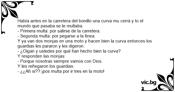 Y ya van dos monjas en una moto y hacen bien la curva entonces los guardias les pararon y les digeron: